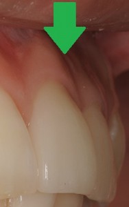 上の患者さんの場合は、土台を装着させた後、仮の歯で歯肉の状態を長期的に経過観察した結果、矯正治療は行わず、被せる歯の形を調整することで、歯肉退縮を予防できると判断しました。